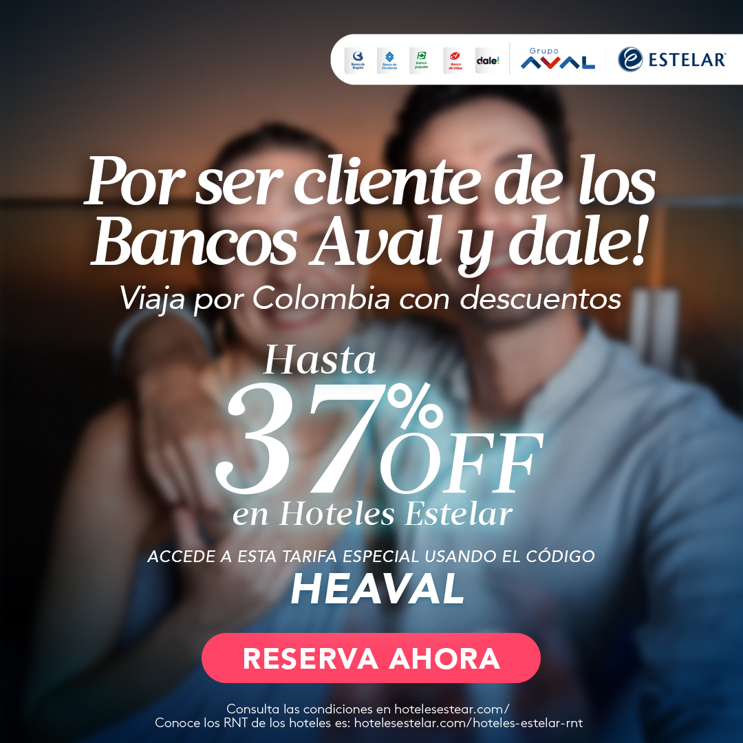 En Hoteles Estelar contamos con una alianza especial para los clientes de los bancos del Grupo Aval, diseñada para ofrecer experiencias únicas que reflejan nuestro compromiso con la excelencia, la hospitalidad y el bienestar de cada huésped.